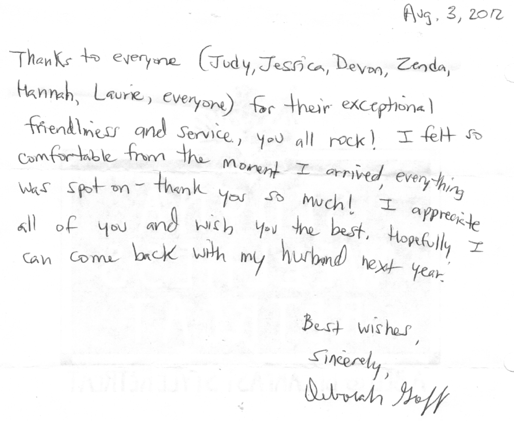 My mother sends her greetings as well. We will forever be grateful. We learned a new, healthier way to live and we have the Sedona Wellness Retreat to thank for it.
